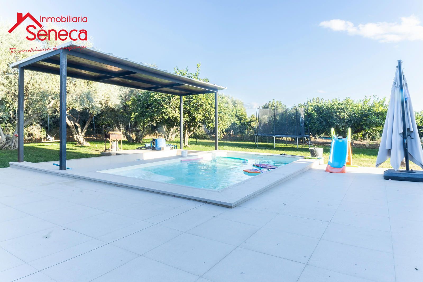 La casa cuenta con 4 amplias habitaciones y 3 baños completos, distribuidos de manera funcional para aprovechar al máximo cada espacio. El salón principal, luminoso y acogedor, se integra con una moderna cocina totalmente equipada, perfecta para disfrutar en familia o con amigos. En el exterior, podrás relajarte en una preciosa piscina privada rodeada de zona de descanso, ideal para los días soleados. Además, dispone de garaje privado y trastero, ofreciendo espacio adicional para almacenaje y total comodidad.