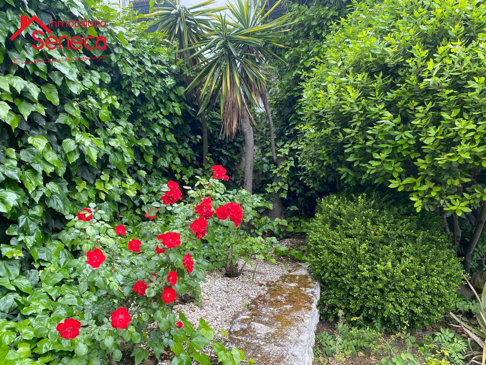 La finca ocupa 7.000 m2 de jardines y 900 m2 de edificación, a la cual se accede a través de un porche cubierto y consta de 2 plantas: