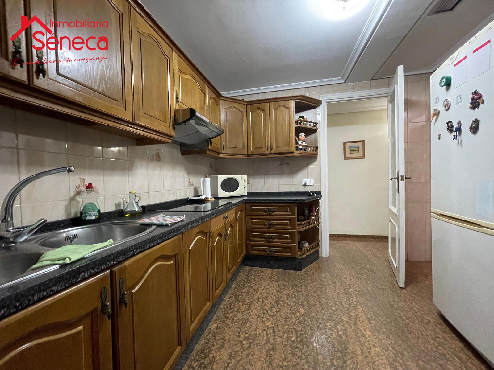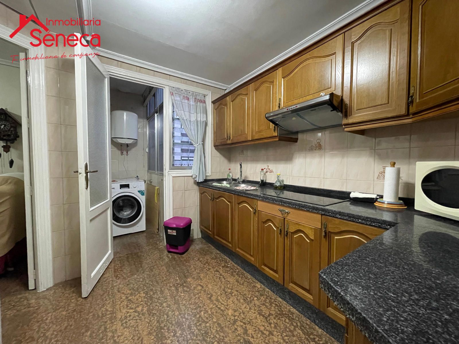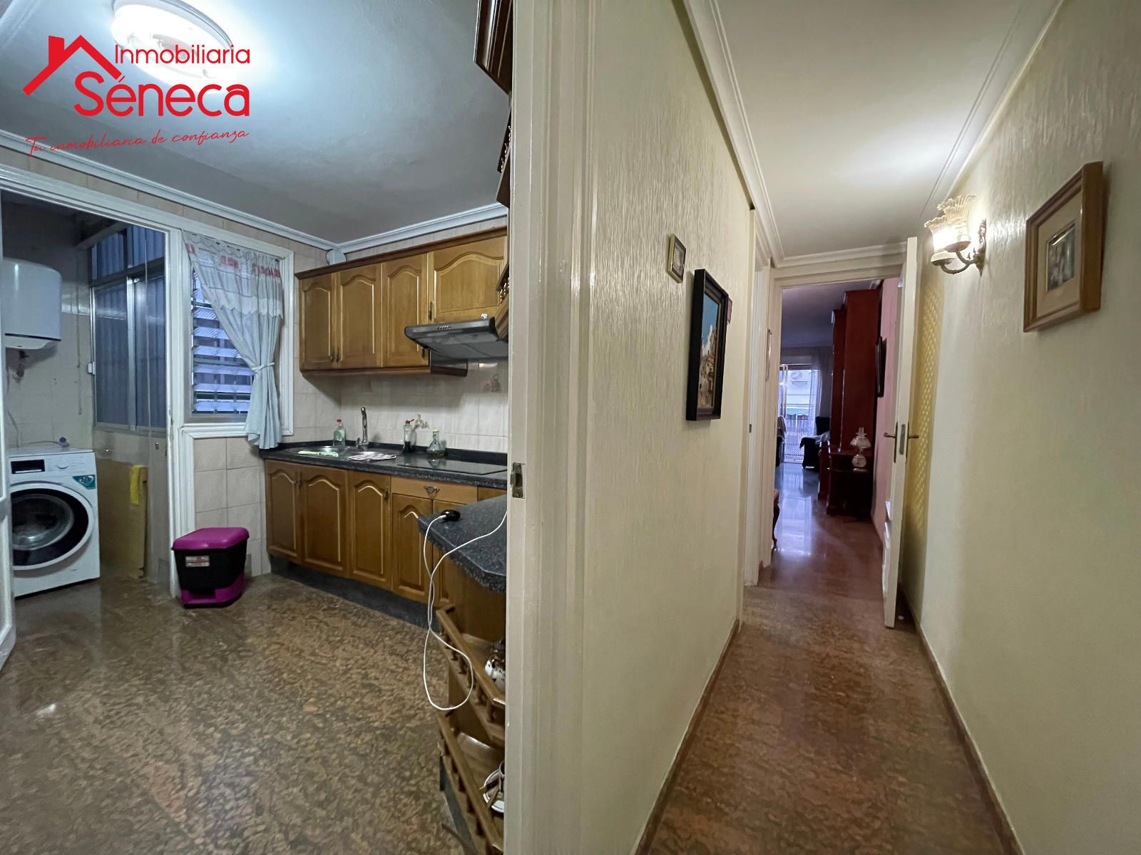 El salón es luminoso y acogedor, con buena ventilación y amplitud. La cocina ofrece un espacio práctico y bien aprovechado. Destacan sus suelos de mármol, que aportan elegancia y frescura a la vivienda.